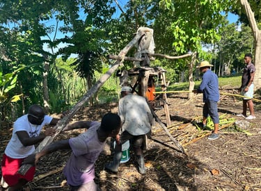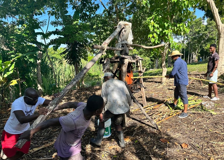 Valorisation de la compassion et de l'entraide entre voisins et parents d'élèves. ici lors d'un'' kombit'' pour extraire du jus de canne à Marre noire (Bainet,Haiti).